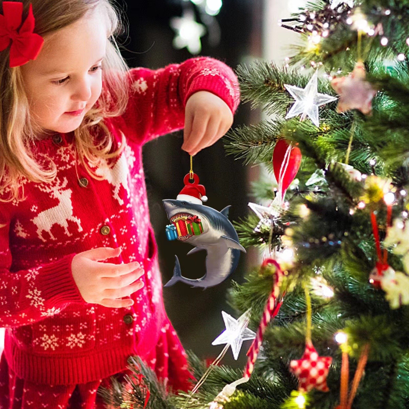 1pc, Christmas Shark Pendant - Wooden Home Decoration for Christmas Tree and Scene Atmosphere - Perfect Holiday and Room Decor
