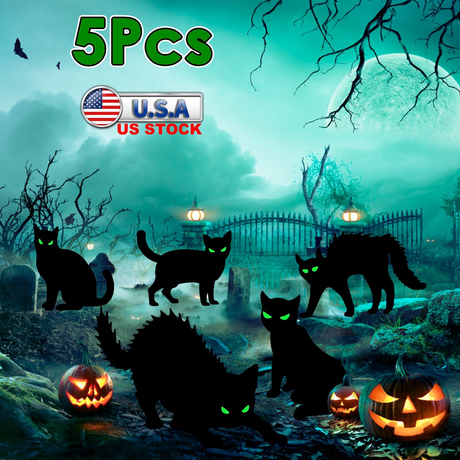 Halloween Cat Yard Sign Decorations 5Pcs Glow in the Dark Halloween Cat Fluorescence Lawn Sign with 10 Stakes for Haunted House Garden Yard and Scary